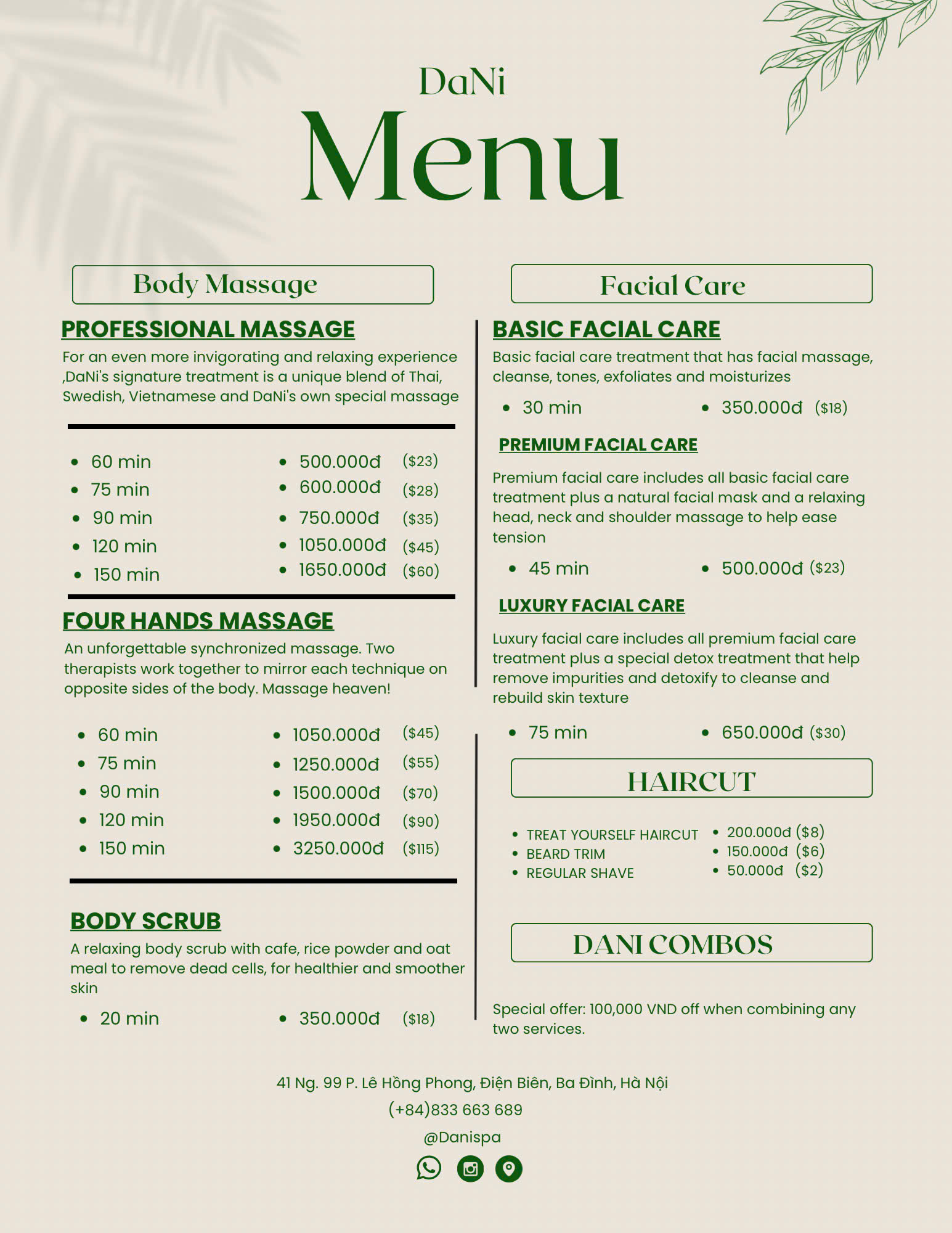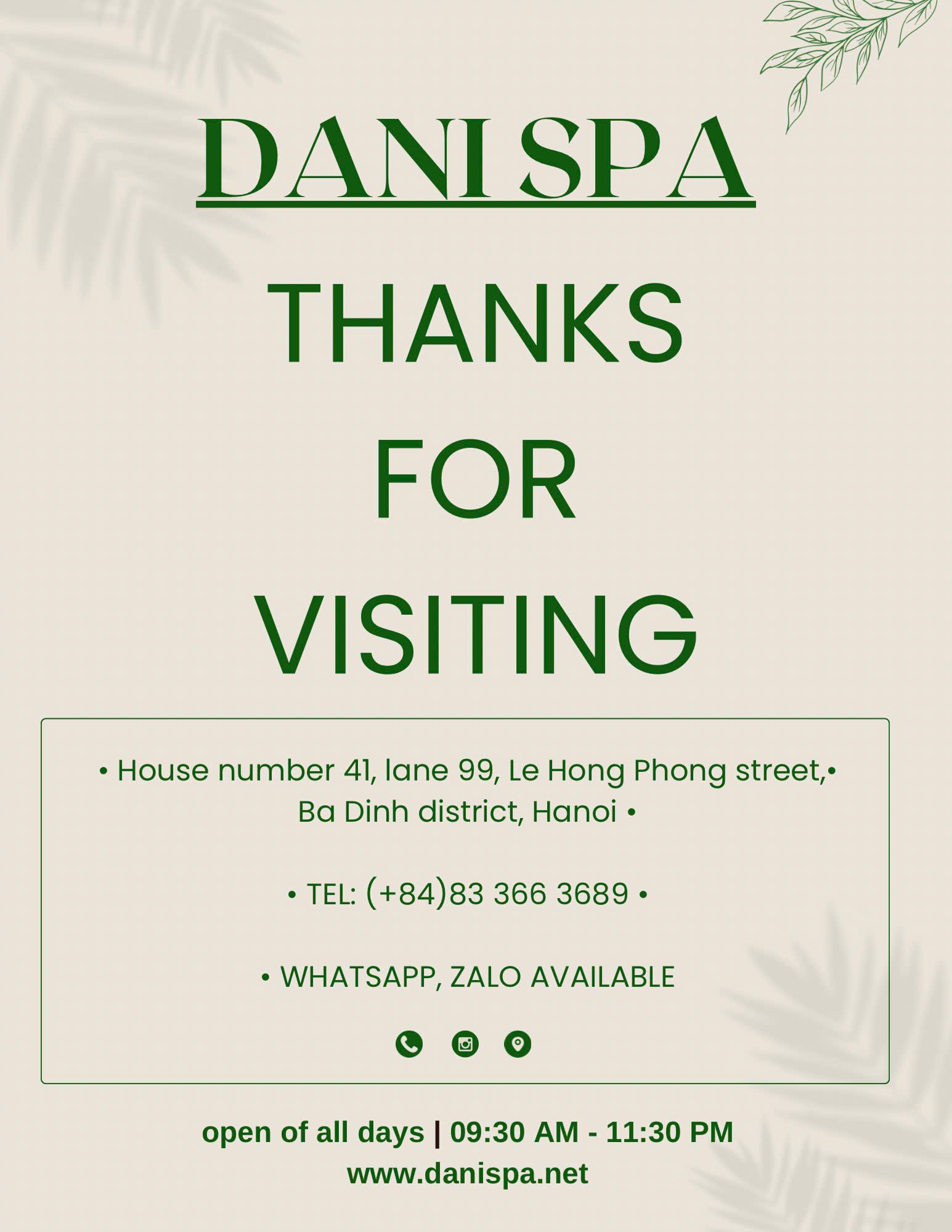 I am very satisfied with the Spa service of DaNi Spa, thanks to DaNi Spa, I feel much more comfortable mentally.